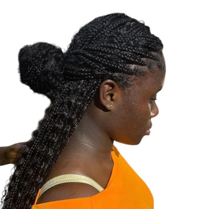 Neatly crafted cornrows enhanced with extensions for added length and fullness, styled in clean, defined patterns that suit your desired look. Installed with precision and balanced tension to ensure comfort, durability, and a sleek, long-lasting protective style.