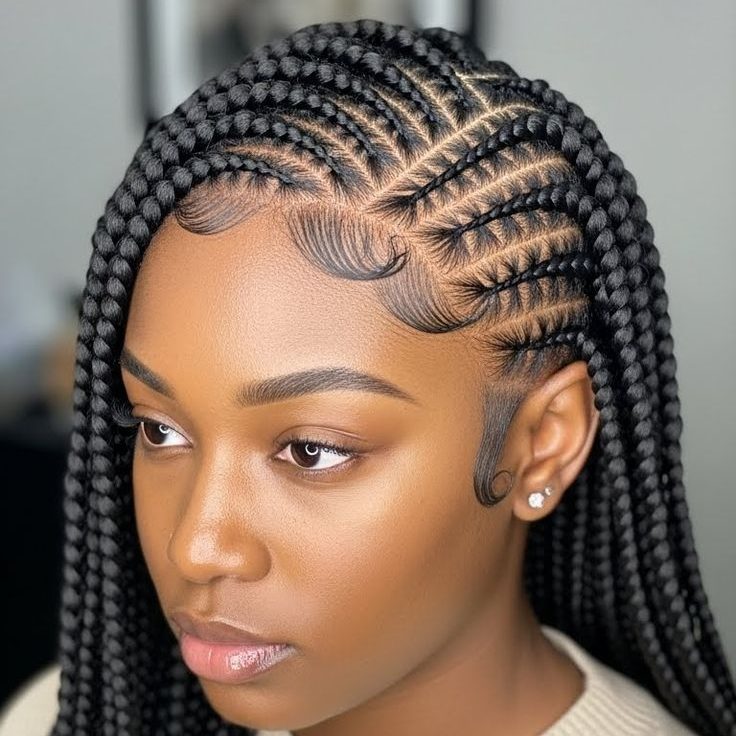 Traditional Fulani braids crafted with precision parting and signature front detailing that frames the face beautifully. This style blends neat cornrows with flowing braids, often finished with beads or accessories for that bold, cultural touch.