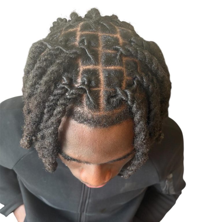 Professional loc services including starter locs, retwists, and faux loc installations. Structured grid parting and careful palm rolling ensure healthy growth and a clean, maintained appearance.